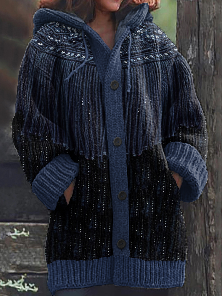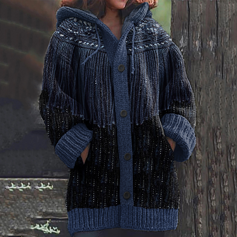 Women's Retro Glitter Tassels Cozy Hooded Cardigan
