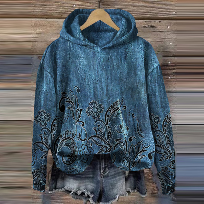 Vintage Distressed Ethnic Pattern Casual Hoodie