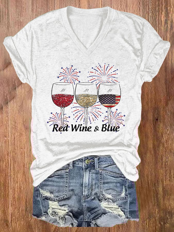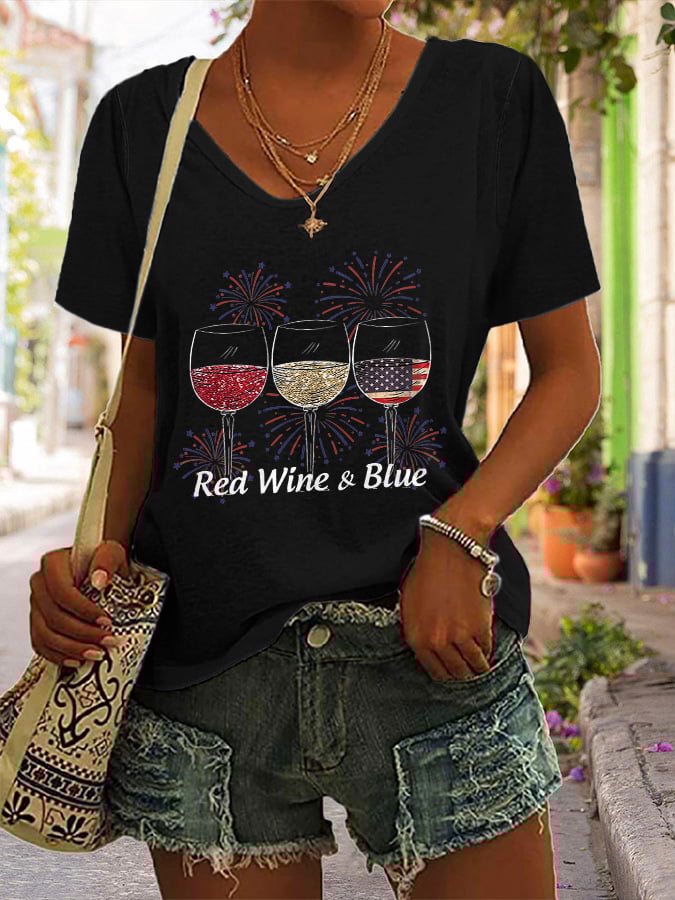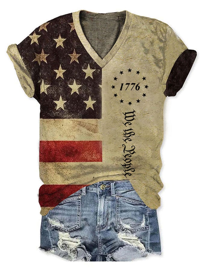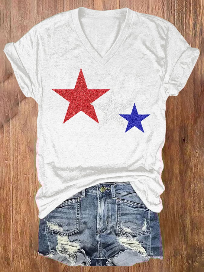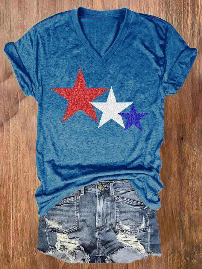 Women's Independence Day Printed V-Neck T-Shirt