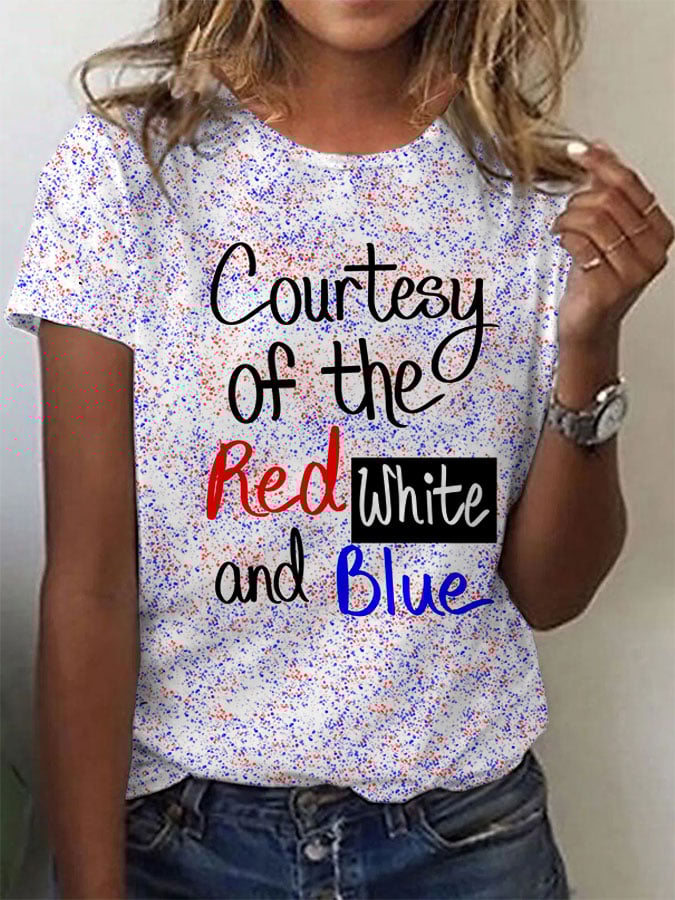 Women's American Patriotic Song "Courtesy of the Red, White and Blue" Printed Crew Neck T-Shirt