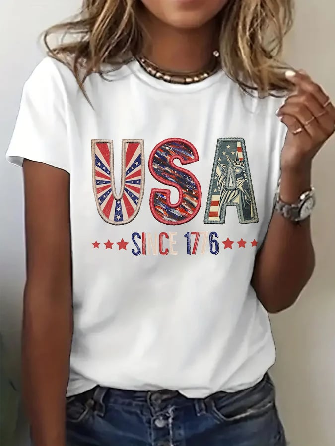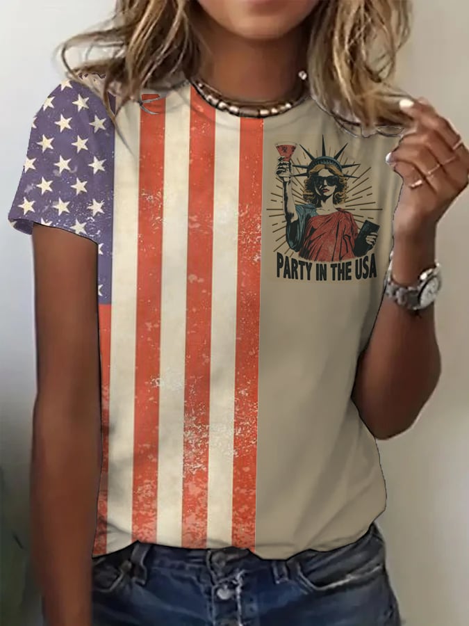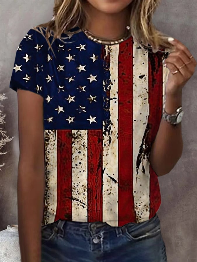 Women's Retro Independence Day Printed Casual T-Shirt