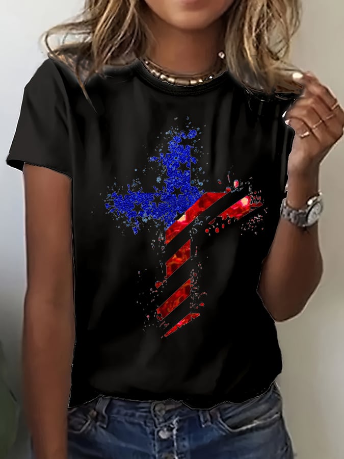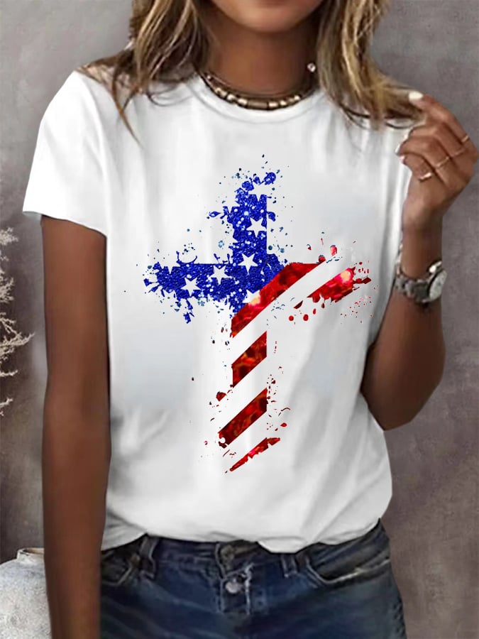 Women's Cross Flag Print Casual T-Shirt
