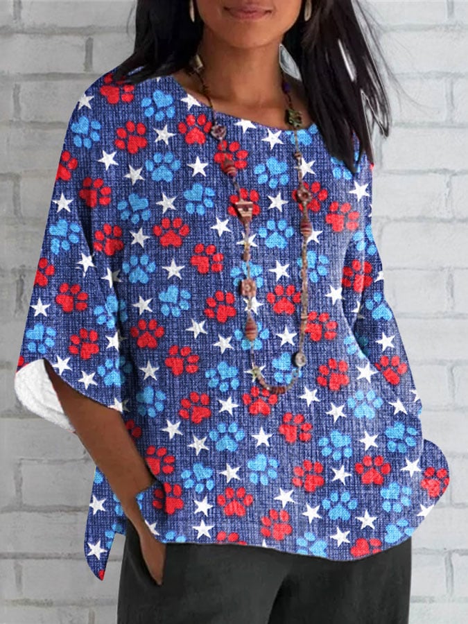 Women's Independence Day Flag Element Dog Paw Casual Top