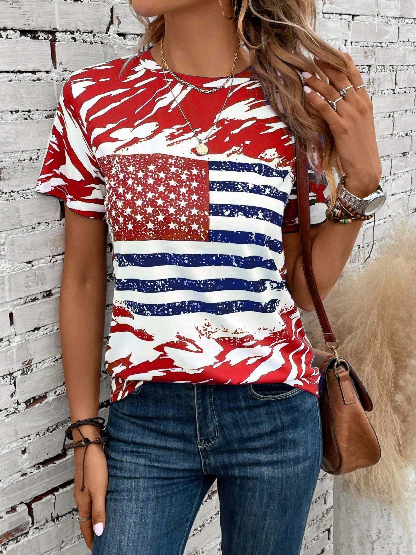 Women's Flag Print Casual T-Shirt
