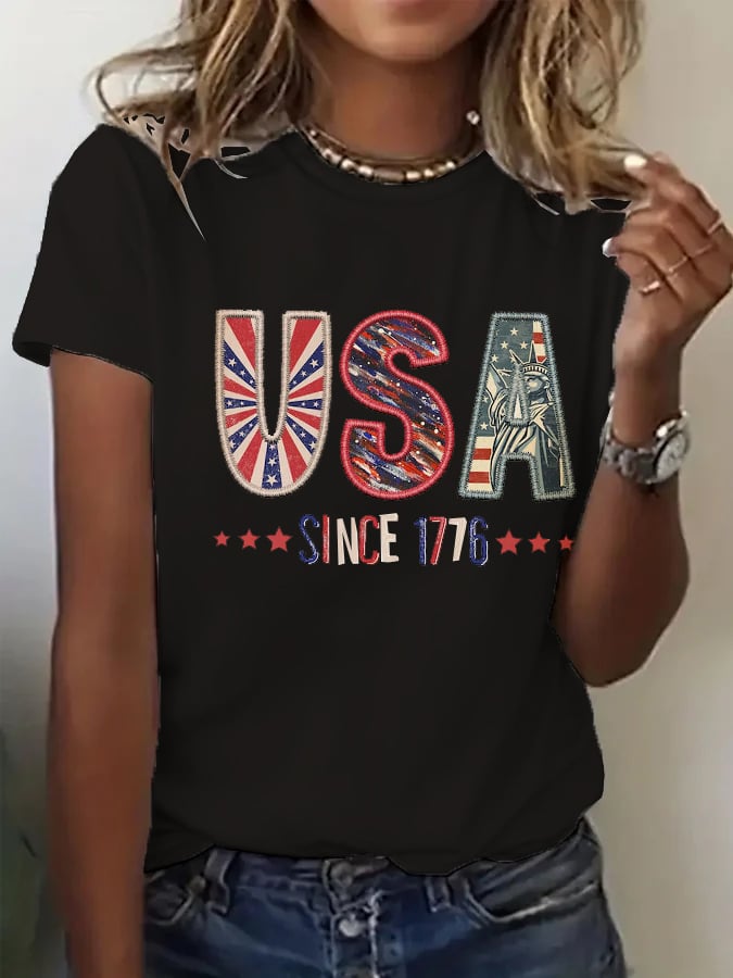 Women's Independence Day Printed Casual T-Shirt