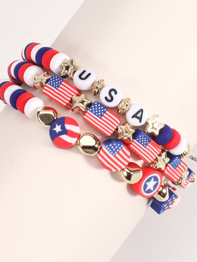 Independence Day Creative Colorful Handmade American Flag Red White And Blue Beaded Bracelet Multi-Layer Set