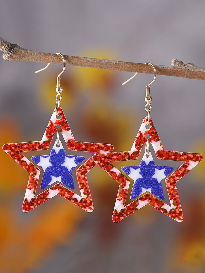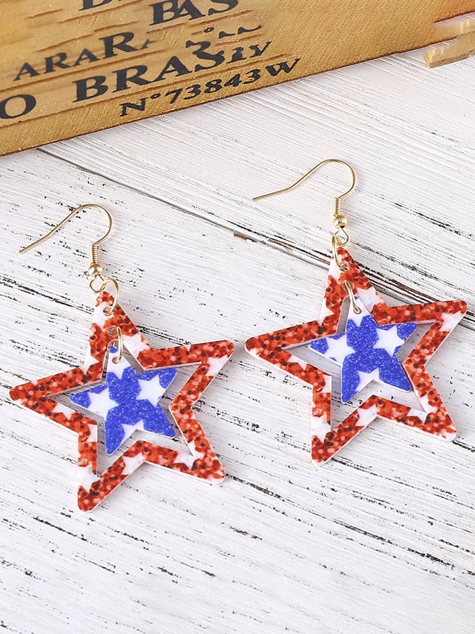 Independence Day Creative Double-Sided Acrylic Red, White And Blue Five-Pointed Star Earrings