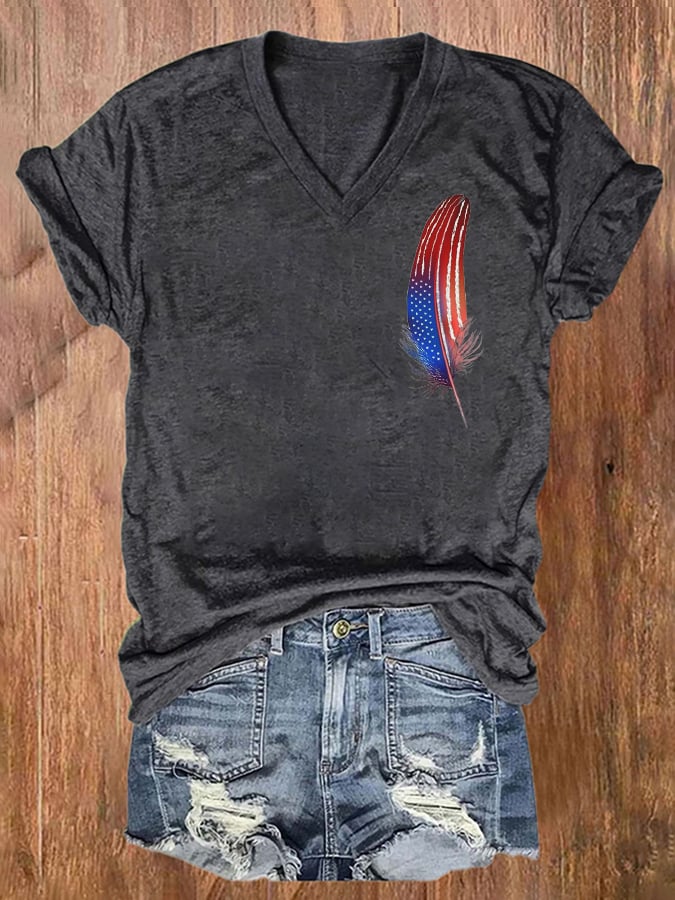 Women's Feather Flag Independence Day Print V-Neck T-Shirt