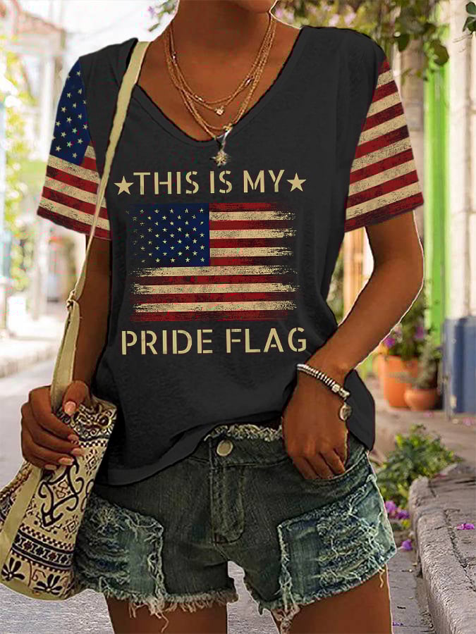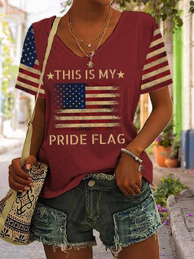 Women's Independence Day This Is My Pride Flag Casual V-Neck Tee