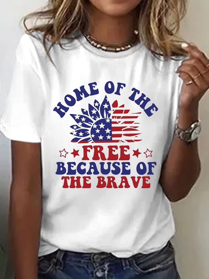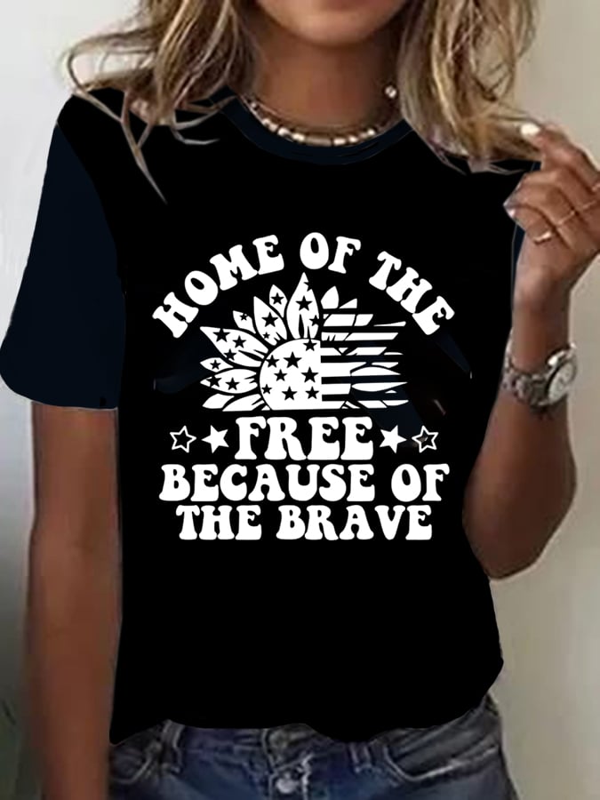 Women's Land Of The Free Because Of The Brave Print Casual V-Neck Tee