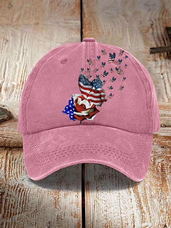 Independence Day Rose And Butterflies Print Sun Hat