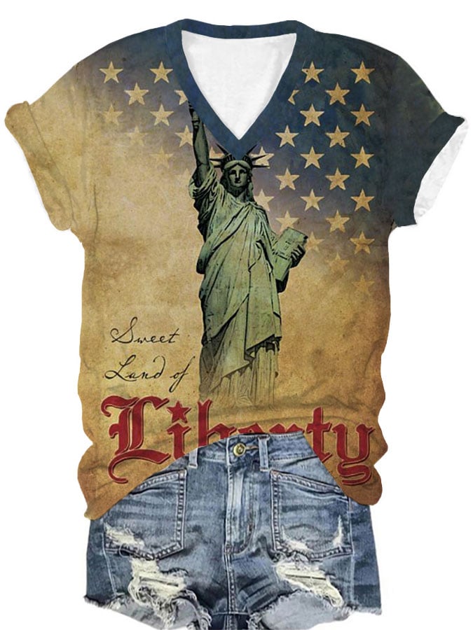 Women's Independence Day Retro Print V-Neck T-Shirt