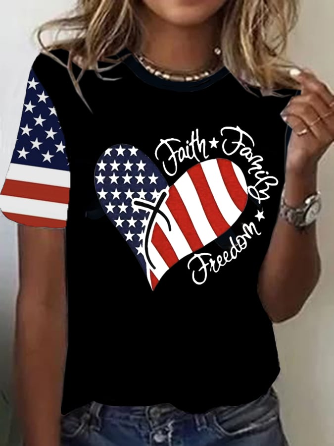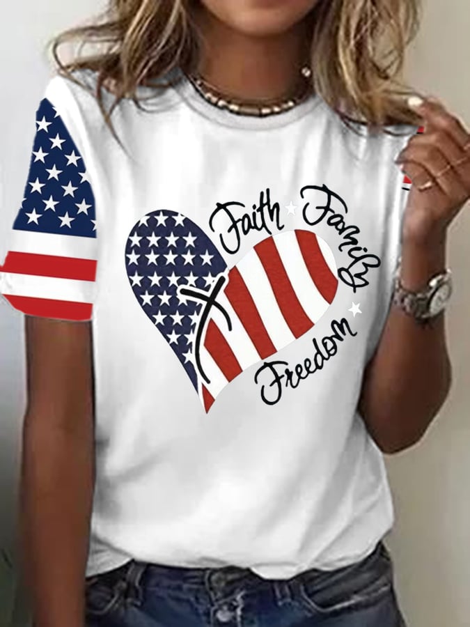 Women's Flag Independence Day Printed Casual T-Shirt