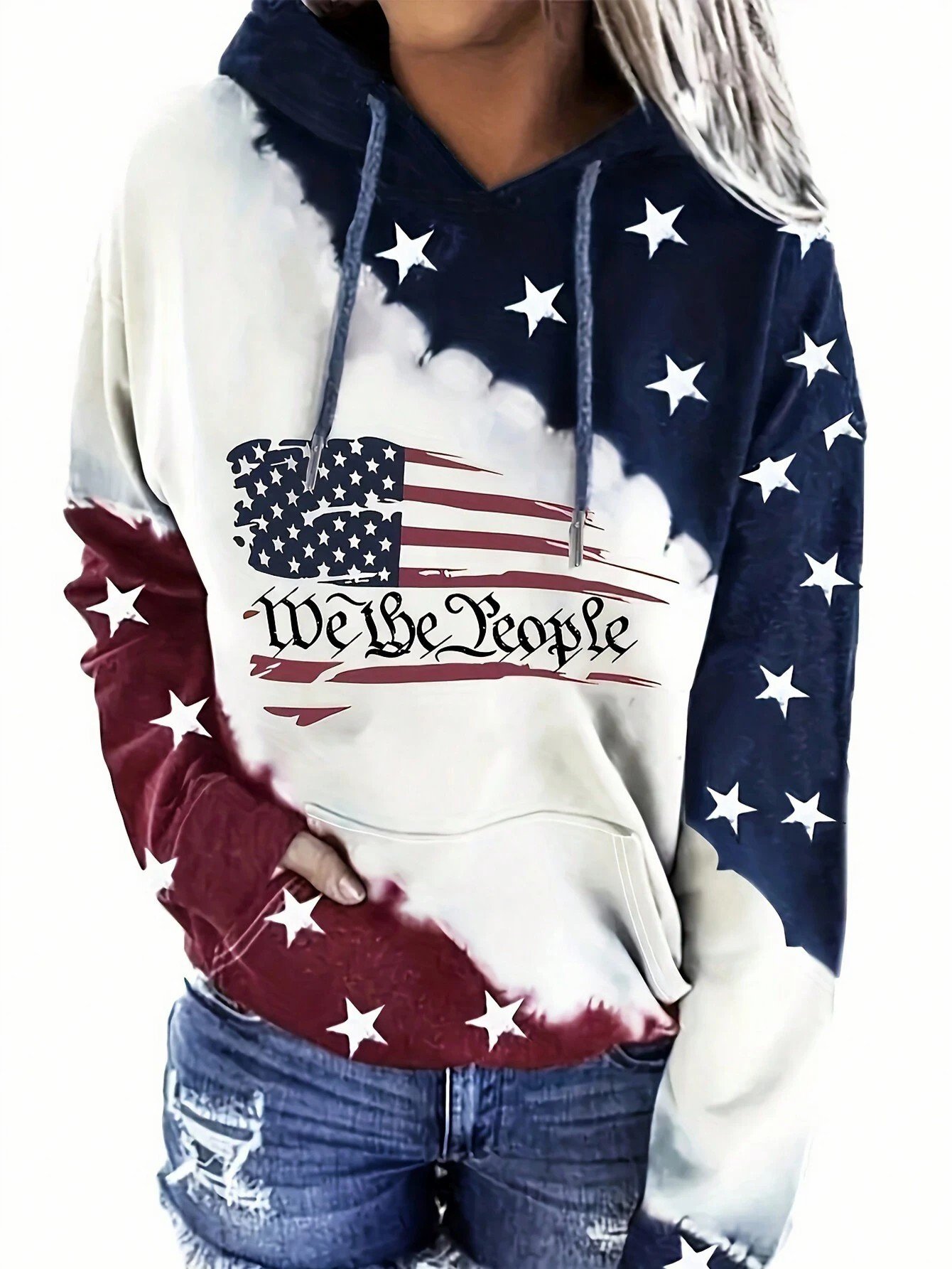 Women's American Flag We The People Printed Hoodie