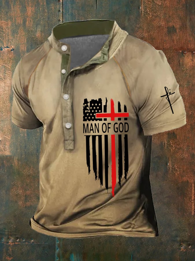 Men's Man Of God American Flag Print Polo