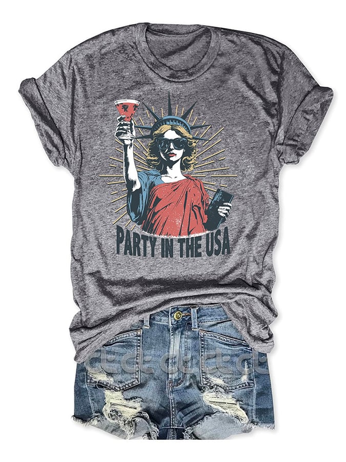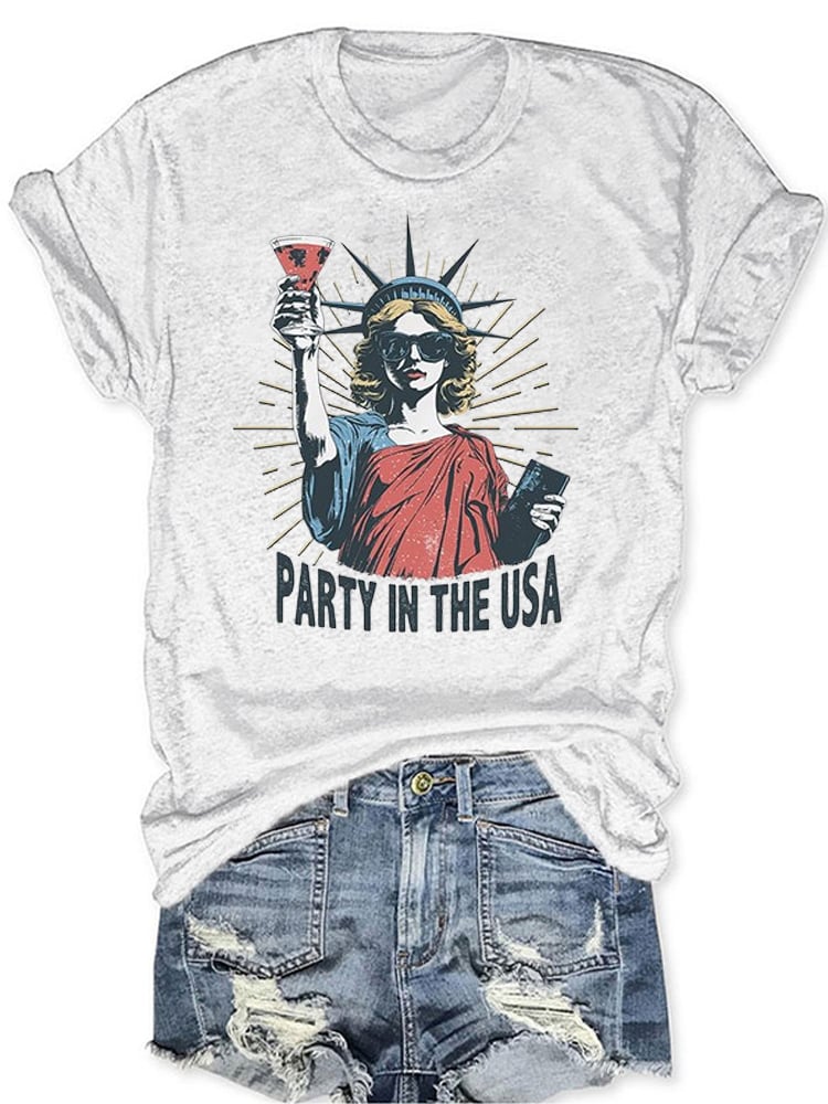 Women's Party In The USA Print Round Neck T-shirt