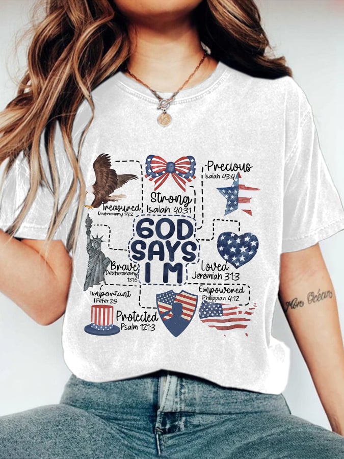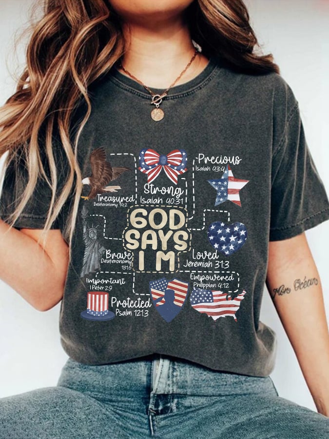 Retro Independence Day God Says I Am Print T-Shirt