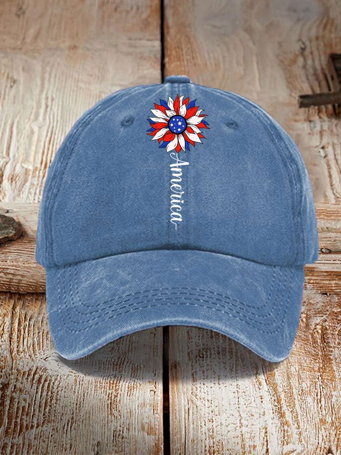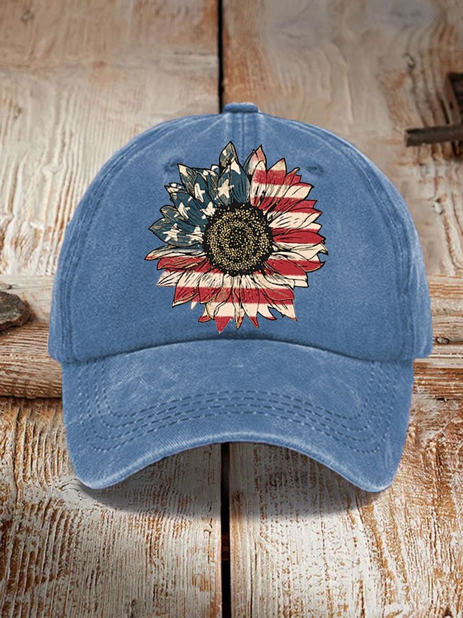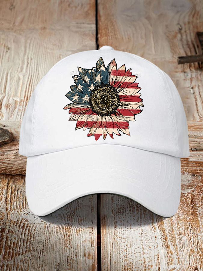 Independence Day America Flag Sunflower Faith Printed Hat