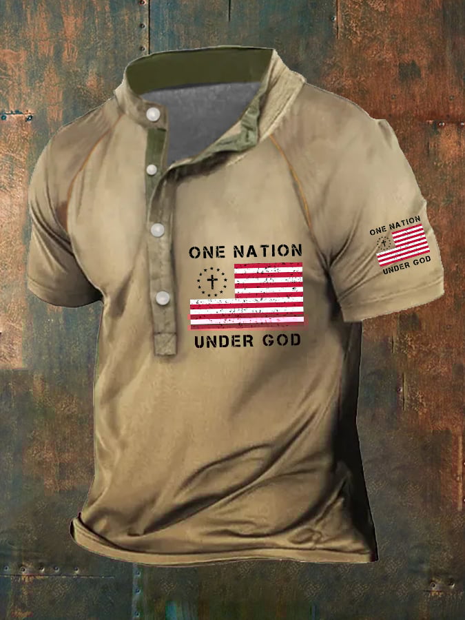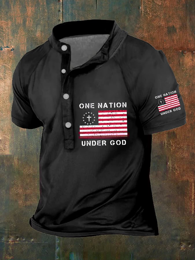 Men's One Nation Under God American Flag Print Polo