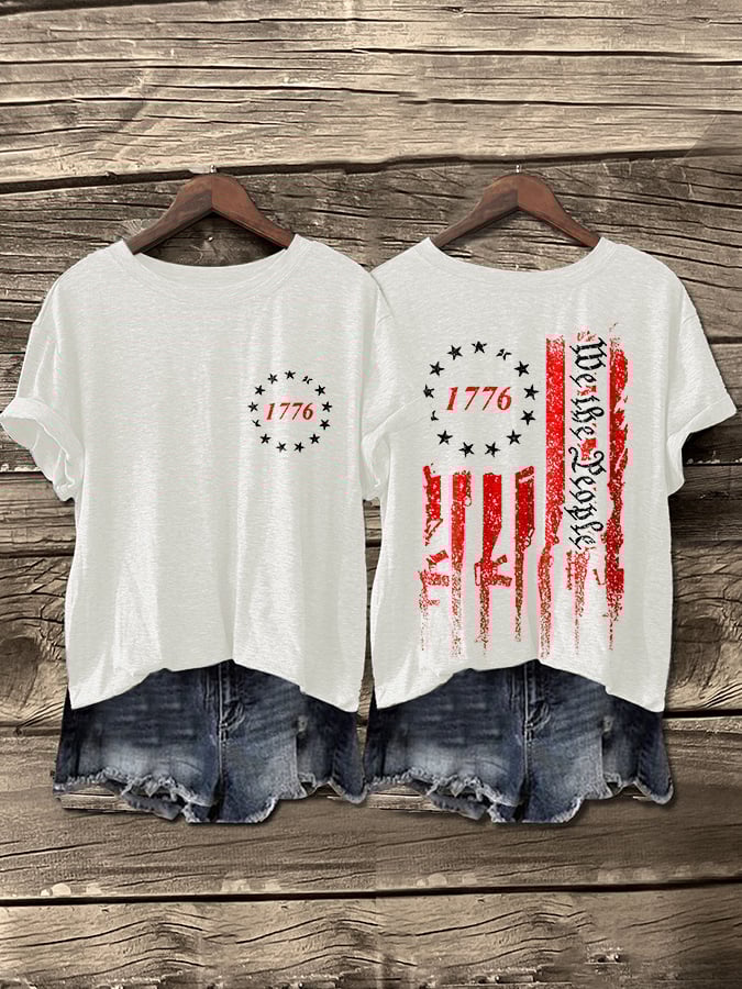 Retro We The People Flag 1776 Print T-Shirt