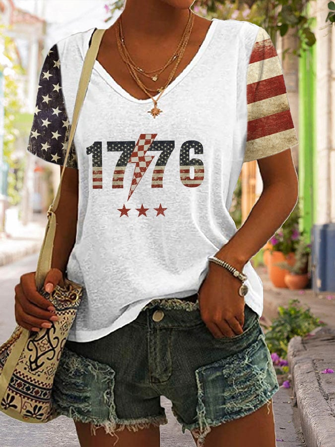 Women's Flag 1776 Print V-Neck T-Shirt