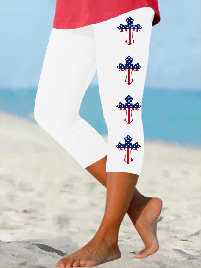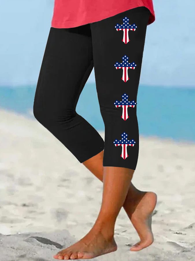 Women's America Flag Cross Faith Cropped Leggings
