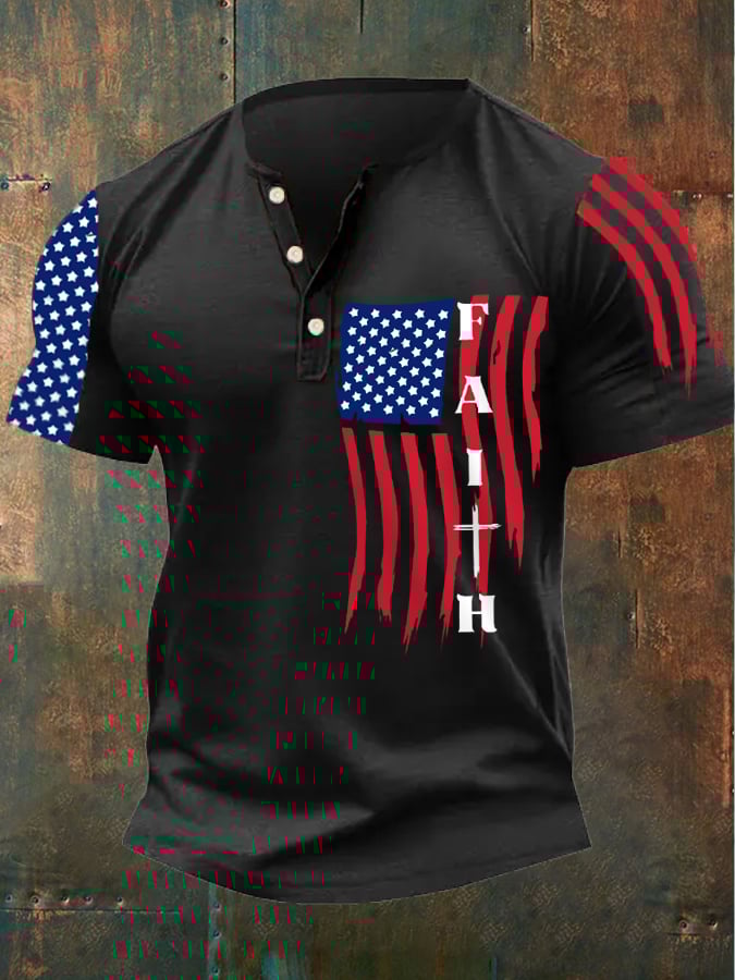 Men's America Flag Cross Faith Polo Top