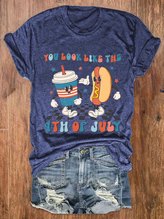 Women's Funny 4th July You Look Like The 4th Of July, Makes Me Want A Hot Dog Real Bad Casual Tee