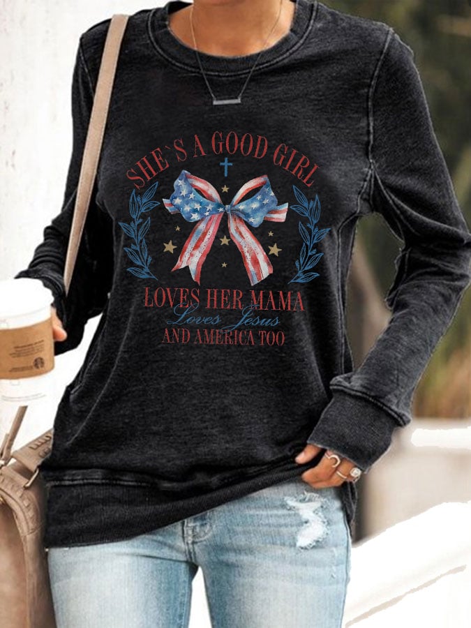 Women's She's A Good Girl Loves Her Mama And America Too Print Casual Sweatshirt