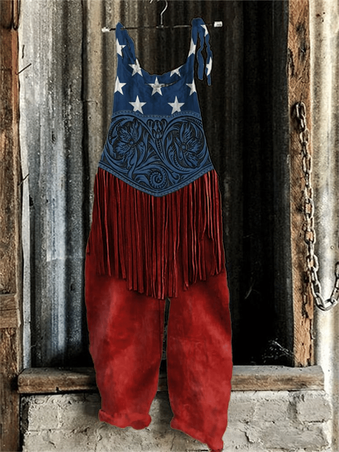 Women's Vintage Independence Day Flag Print Wide Leg Pants