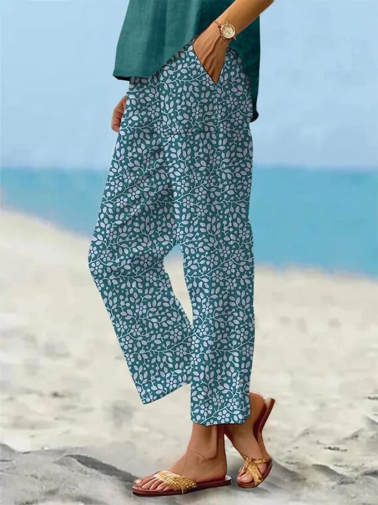 Women's Vintage Floral Art Printed 100%Cotton Casual Pants