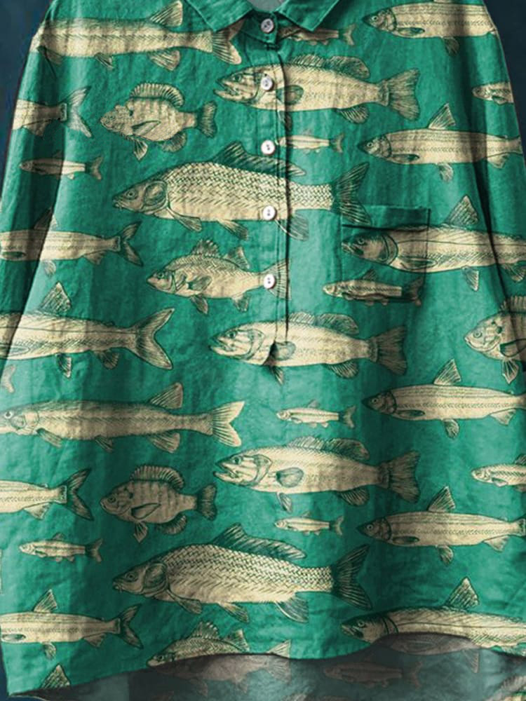 Women's Fish Animals Art Print Casual Cotton And Linen Shirt