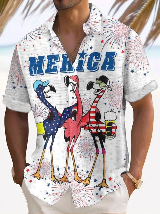 Men's Independence Day Resort Style Flag Flamingo Print Shirt