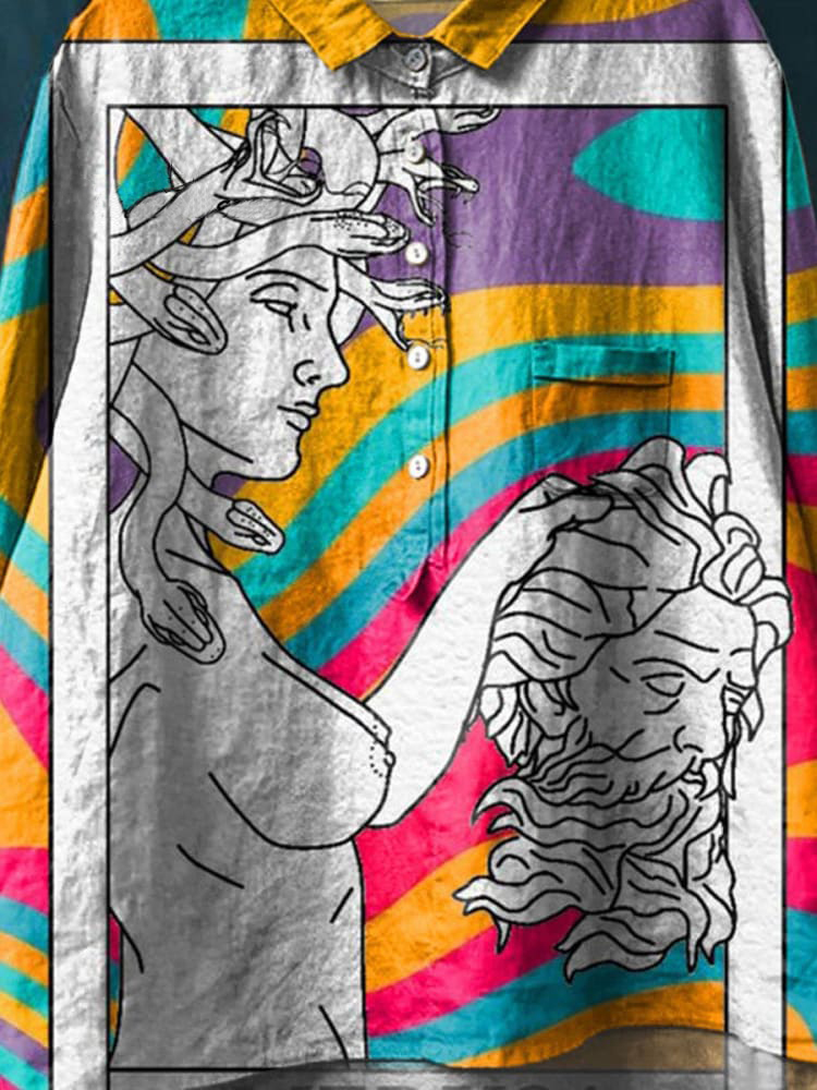 Vintage Medusa Painting Art Print Casual Cotton And Linen Shirt