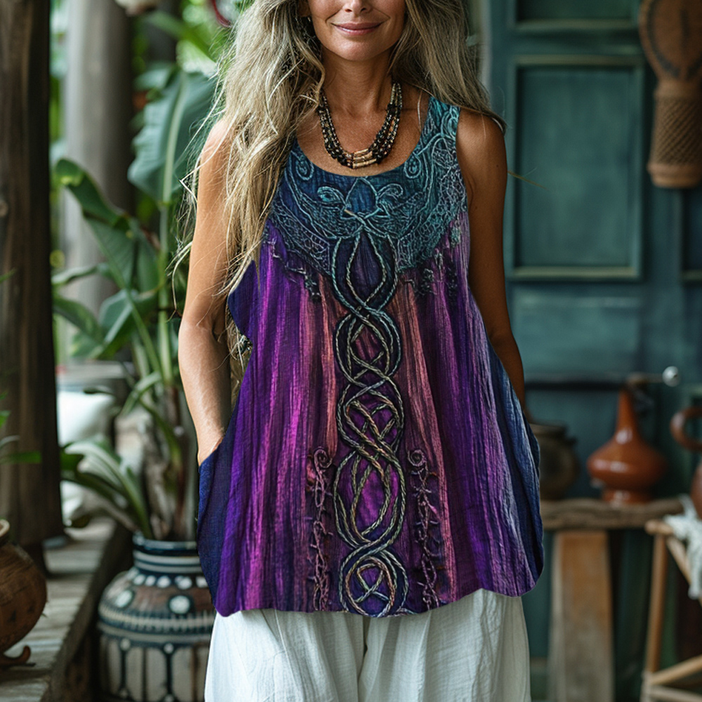 Vintage Celtic Mythology Gradient Lace Linen Tank
