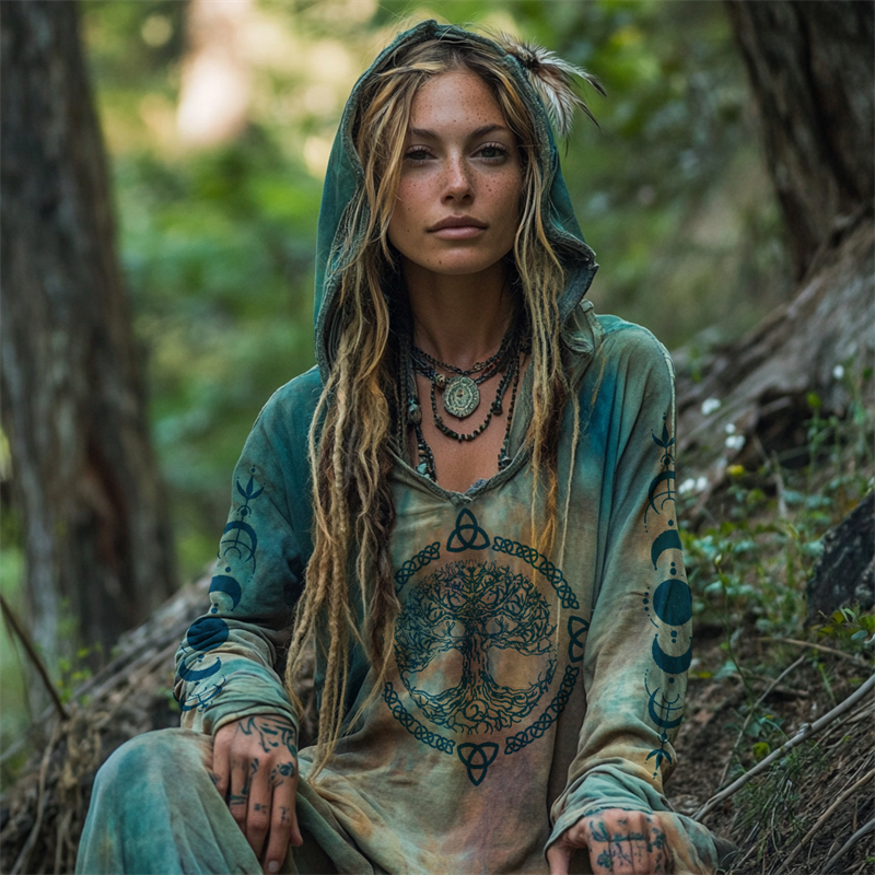 Women's Tribal Viking Tree Of Life Totem Casual Hoodie