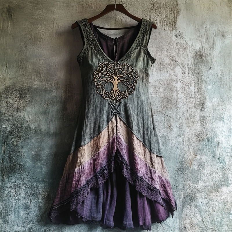 Women's Vintage Viking Tree Of Life Casual Comfort Sleeveless Dress