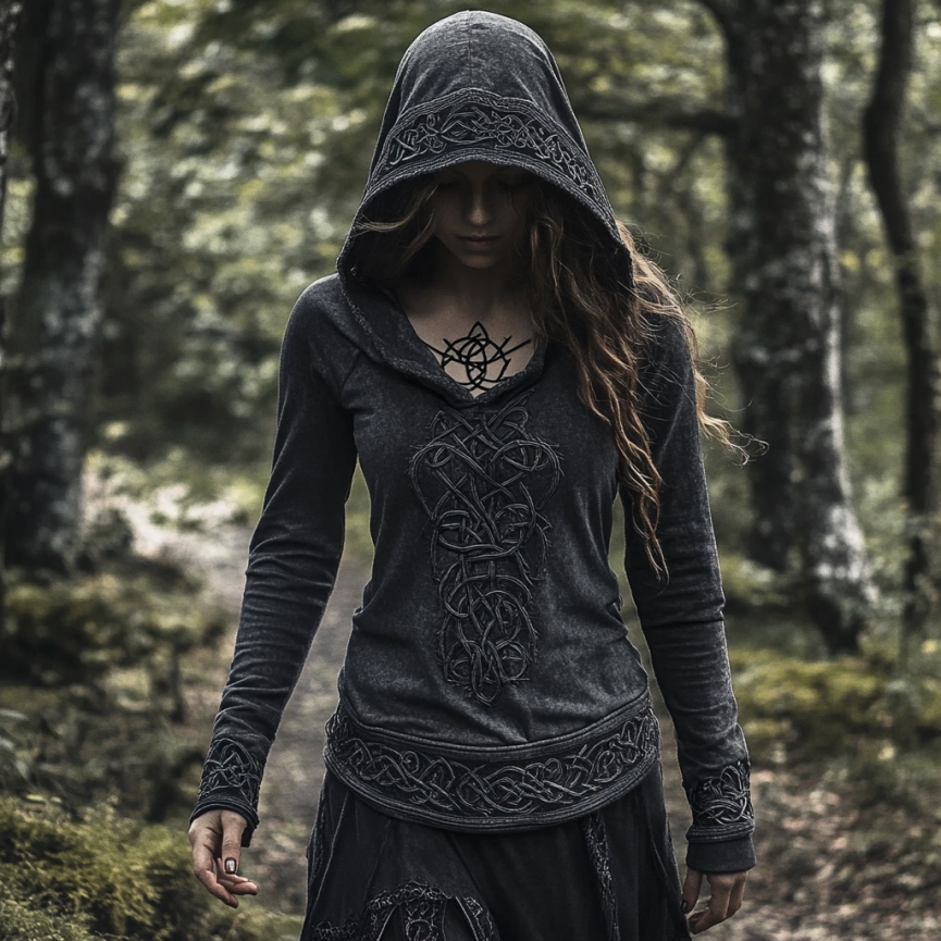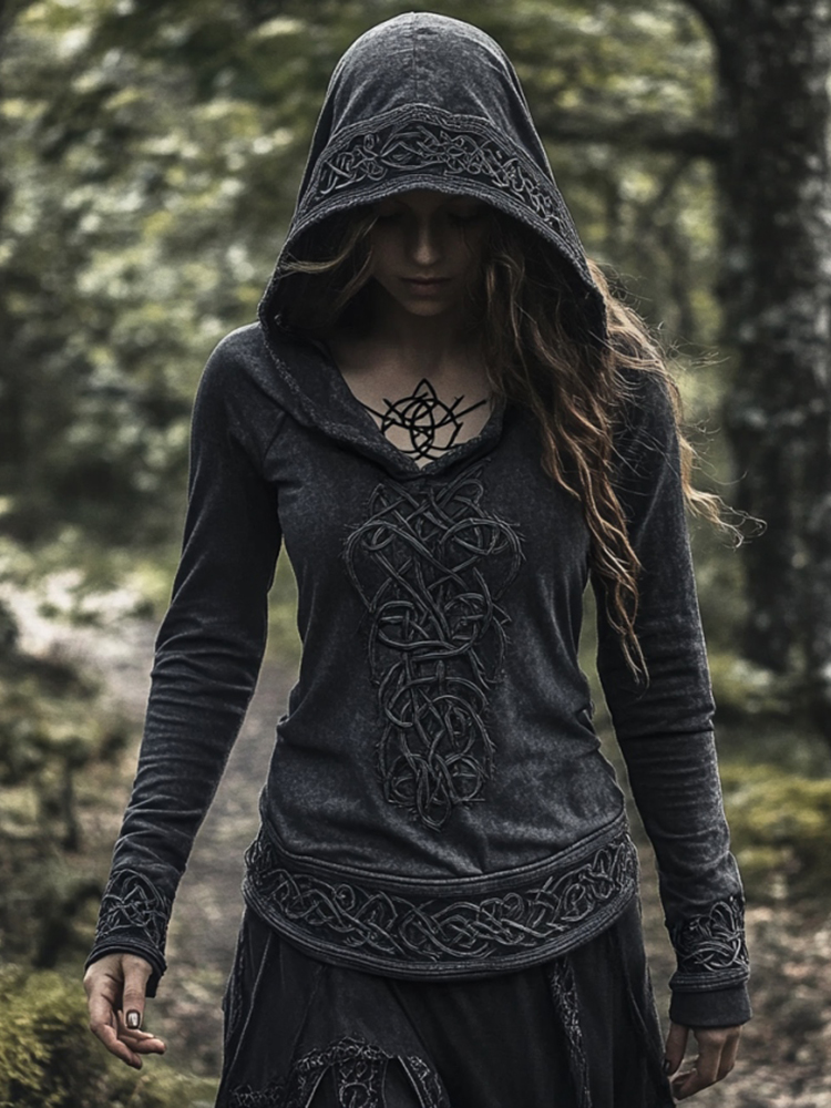 Women's Viking Jacquard Celtic Knot Art Hooded