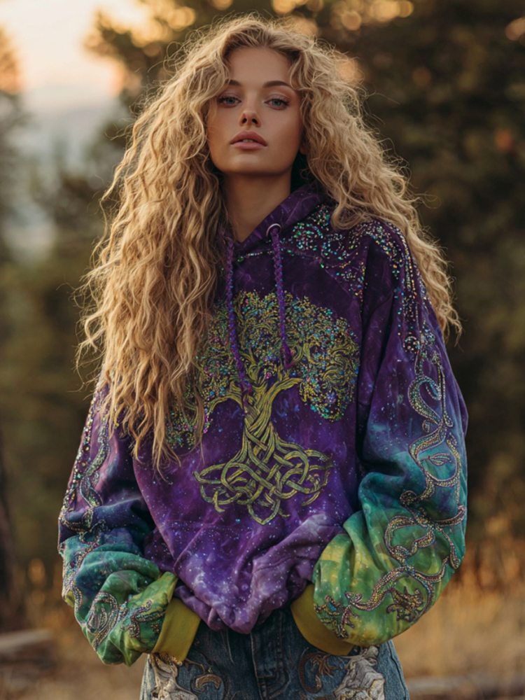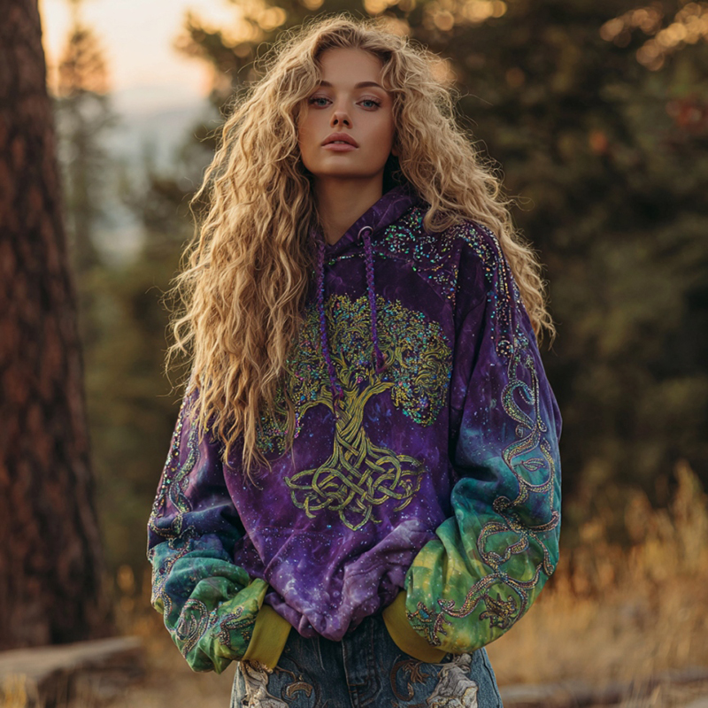 Women's Viking Tree Of Life Celtic Knot Art Gradient Comfort Hoodie