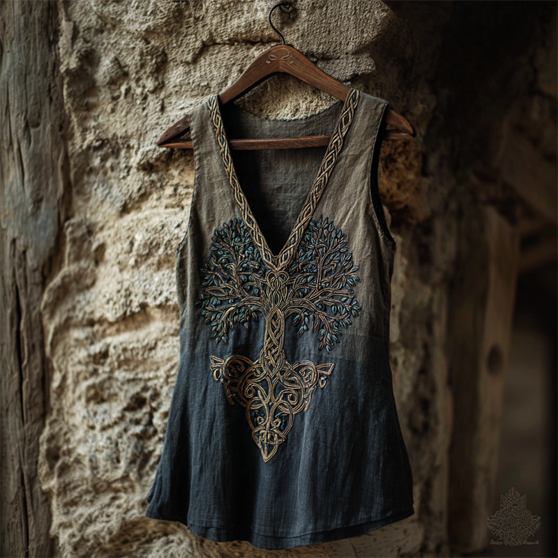 Vintage Glitter Tree Of Life Celtic Gradient Linen Tank Top