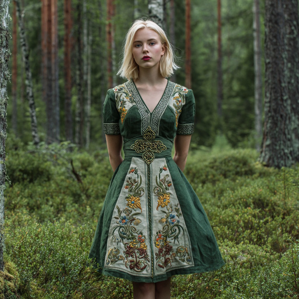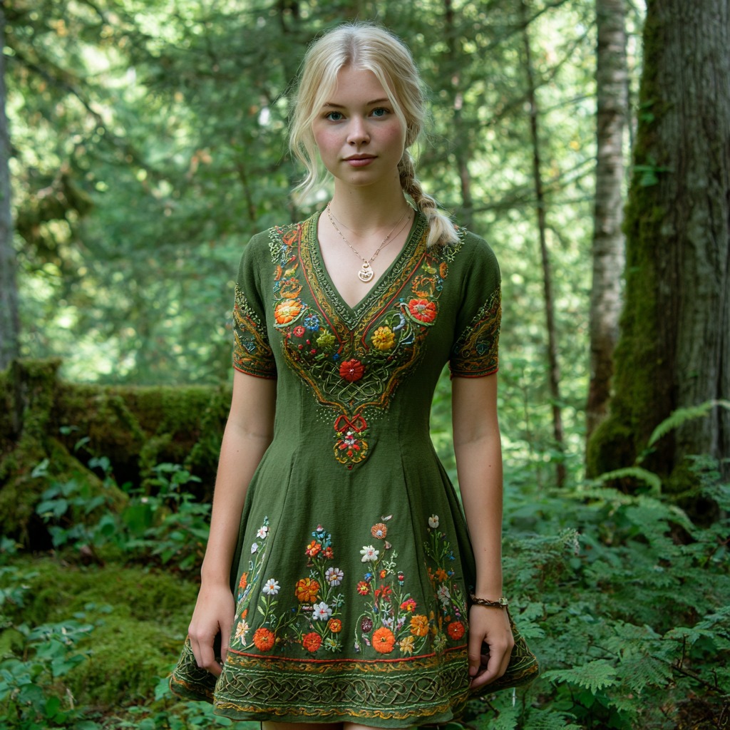 Women's Viking Celtic Floral Embroidery Art Casual Short Mini Dress