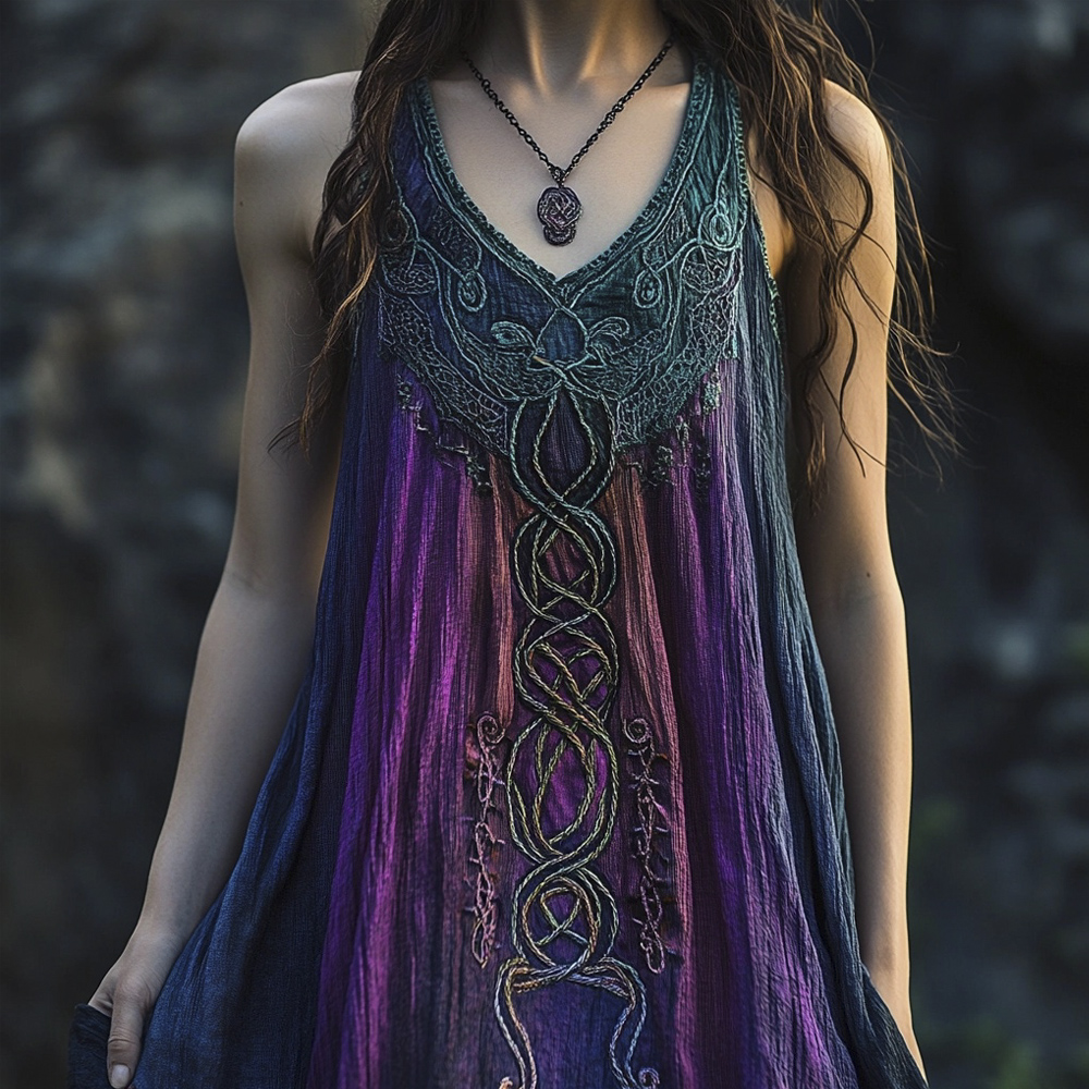 Vintage Celtic Mythology Gradient Lace Linen Tank Dress