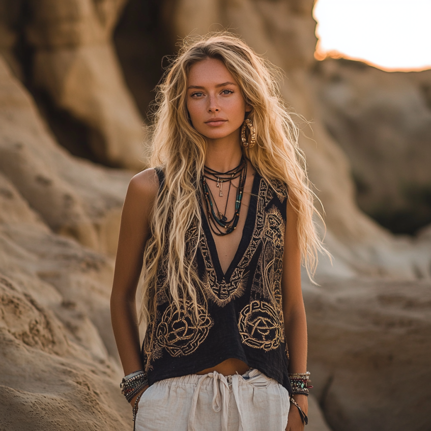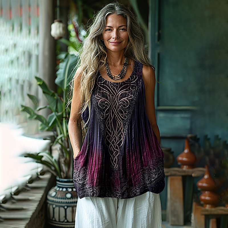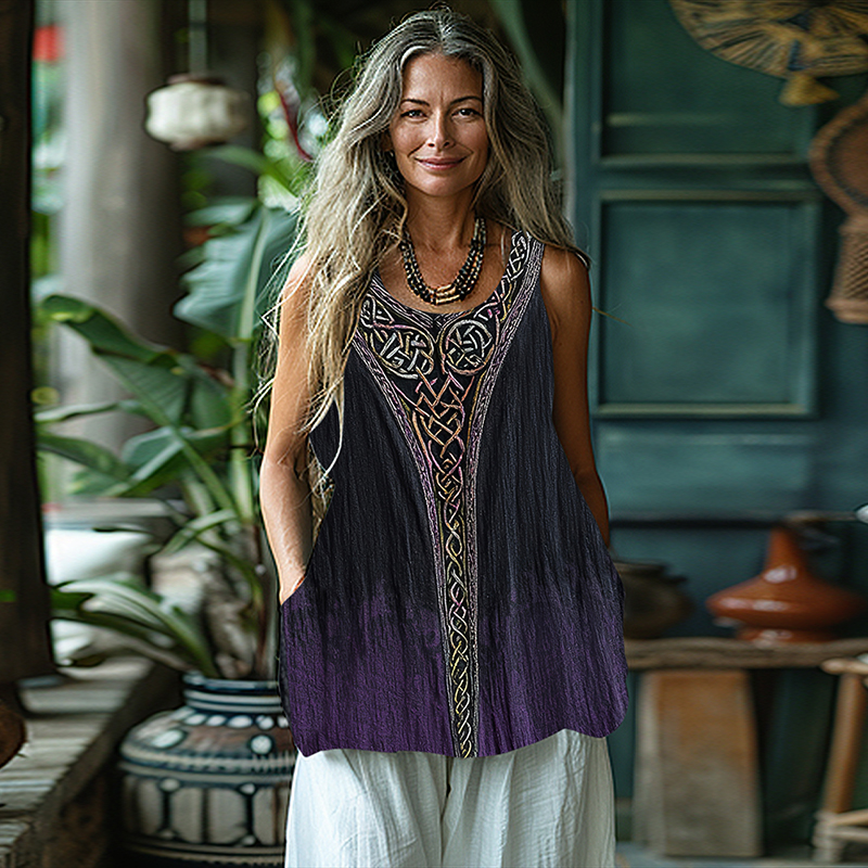 Women's Viking Tribal Ethnic Linen V-neek Sleeveless Top