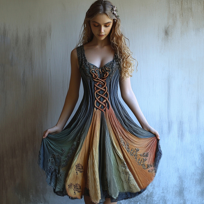 Viking Themed Celtic Knot Irregular Handmade Midi Dress