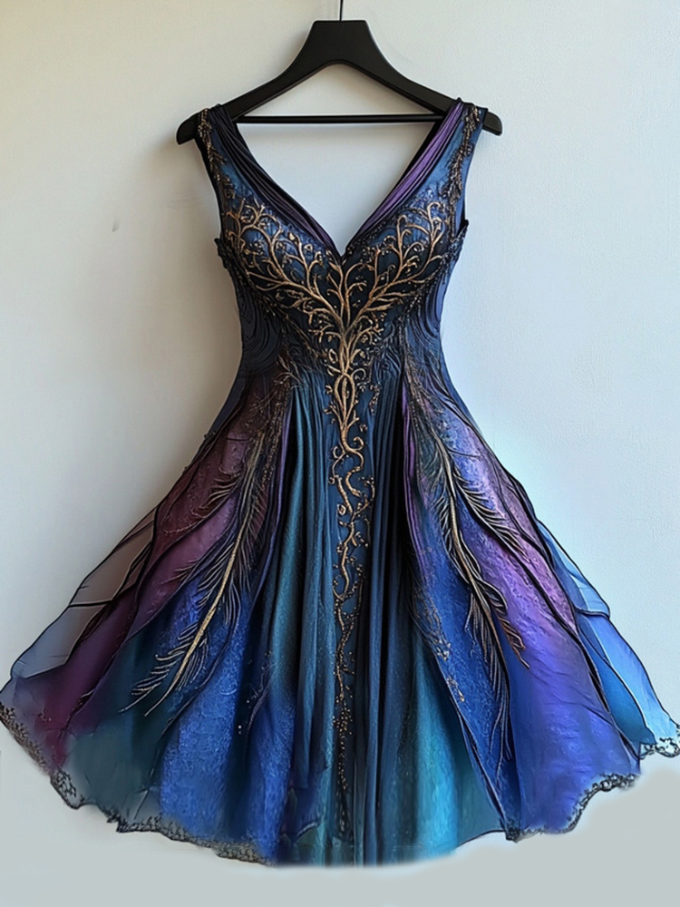 Viking Mythology Phoenix Totem Gradient Mini Dress