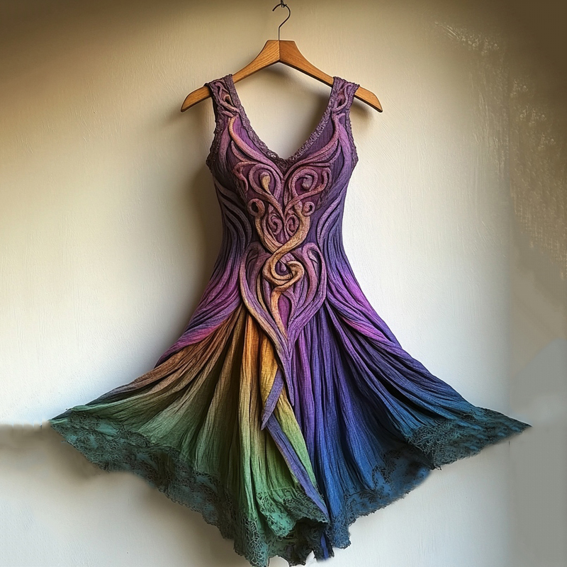 Women's Viking Celtic Knot Phoenix Totem Gradient Linen Midi Dress