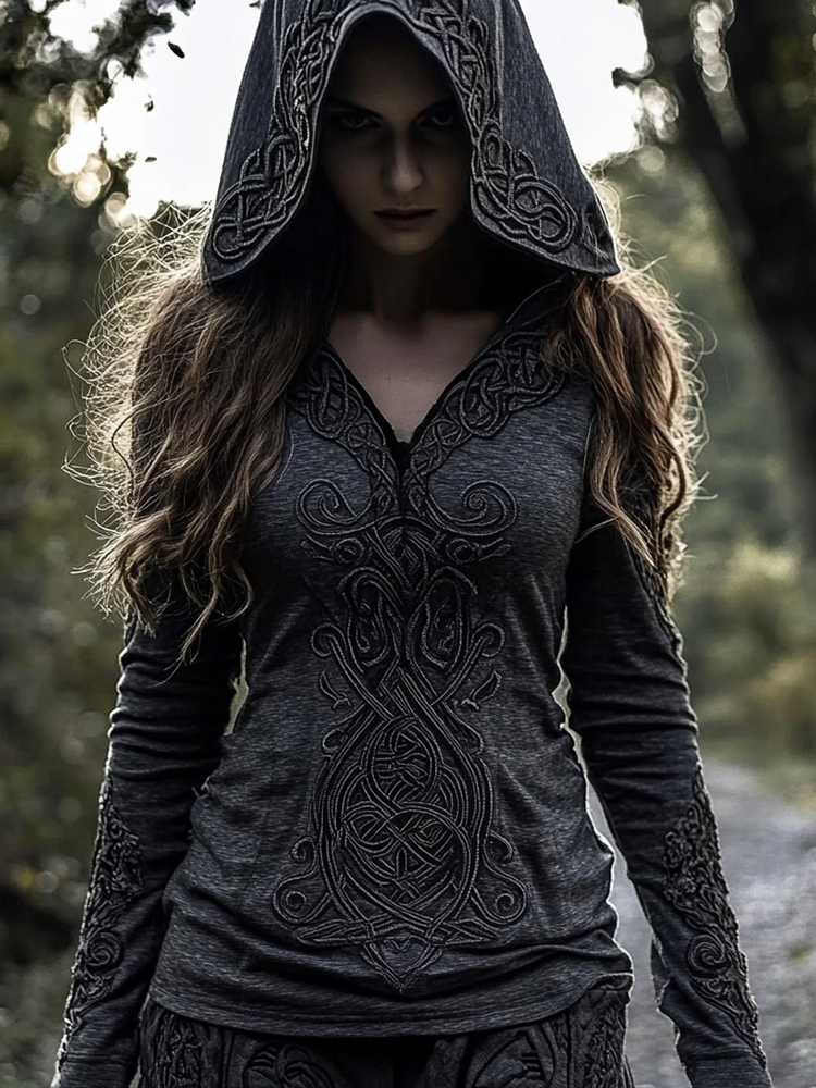 Women's Viking Celtic Art Cotton And Linen Hoodie
