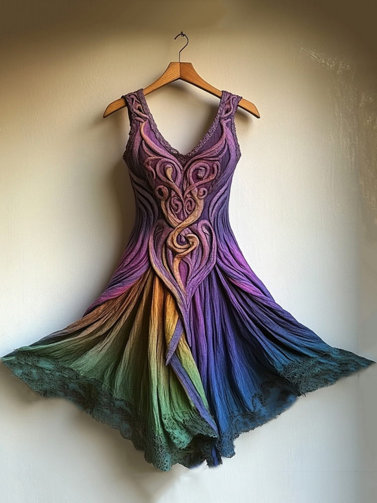 Women's Norse Mythology Celtic Knot Gradient Linen Mini Dress