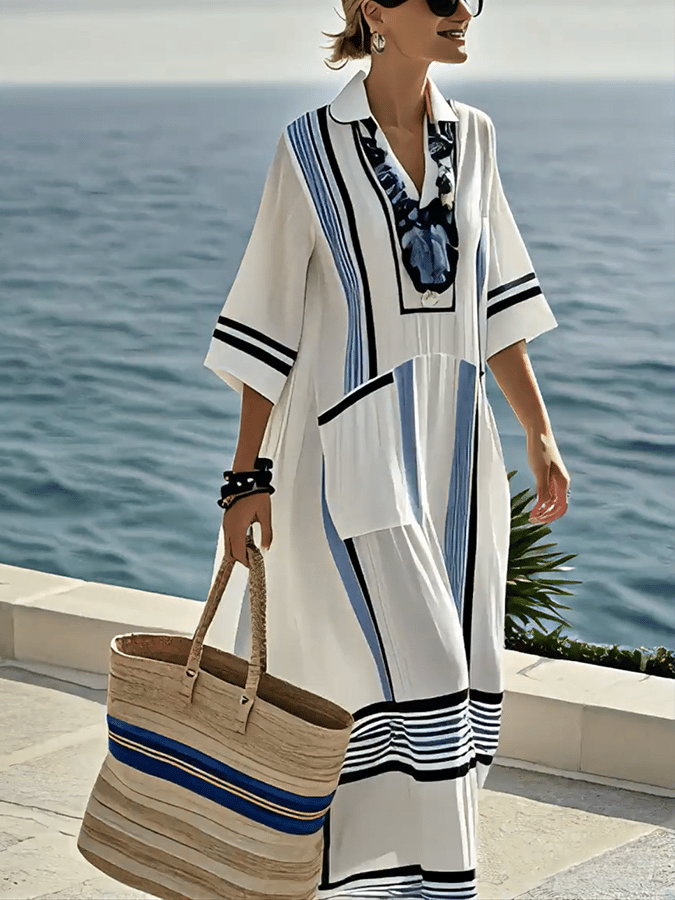 Women'S Loose Striped Print Dress