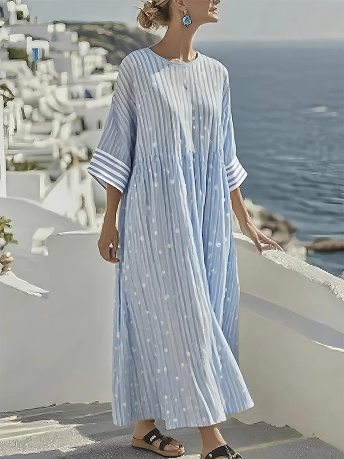 Women's Summer Cotton&Linen Striped Dress